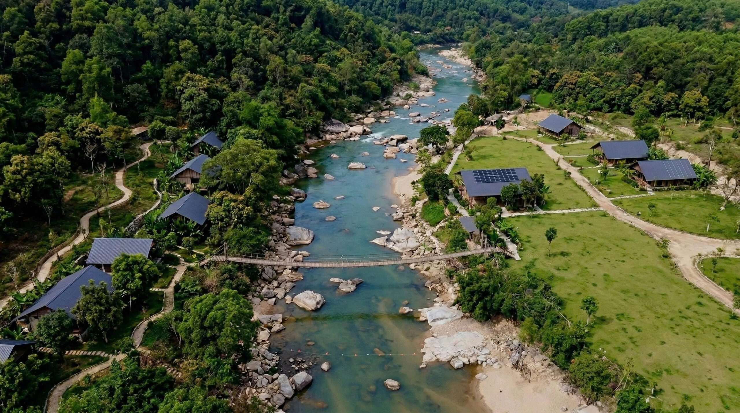 - Bảo tồn địa hình nguyên trạng: Các công trình được đặt khéo léo trên các triền dốc, giữ nguyên vẹn từng gốc cây cổ thụ và dòng chảy của suối, giảm thiểu tối đa tác động vào cấu trúc địa chất.